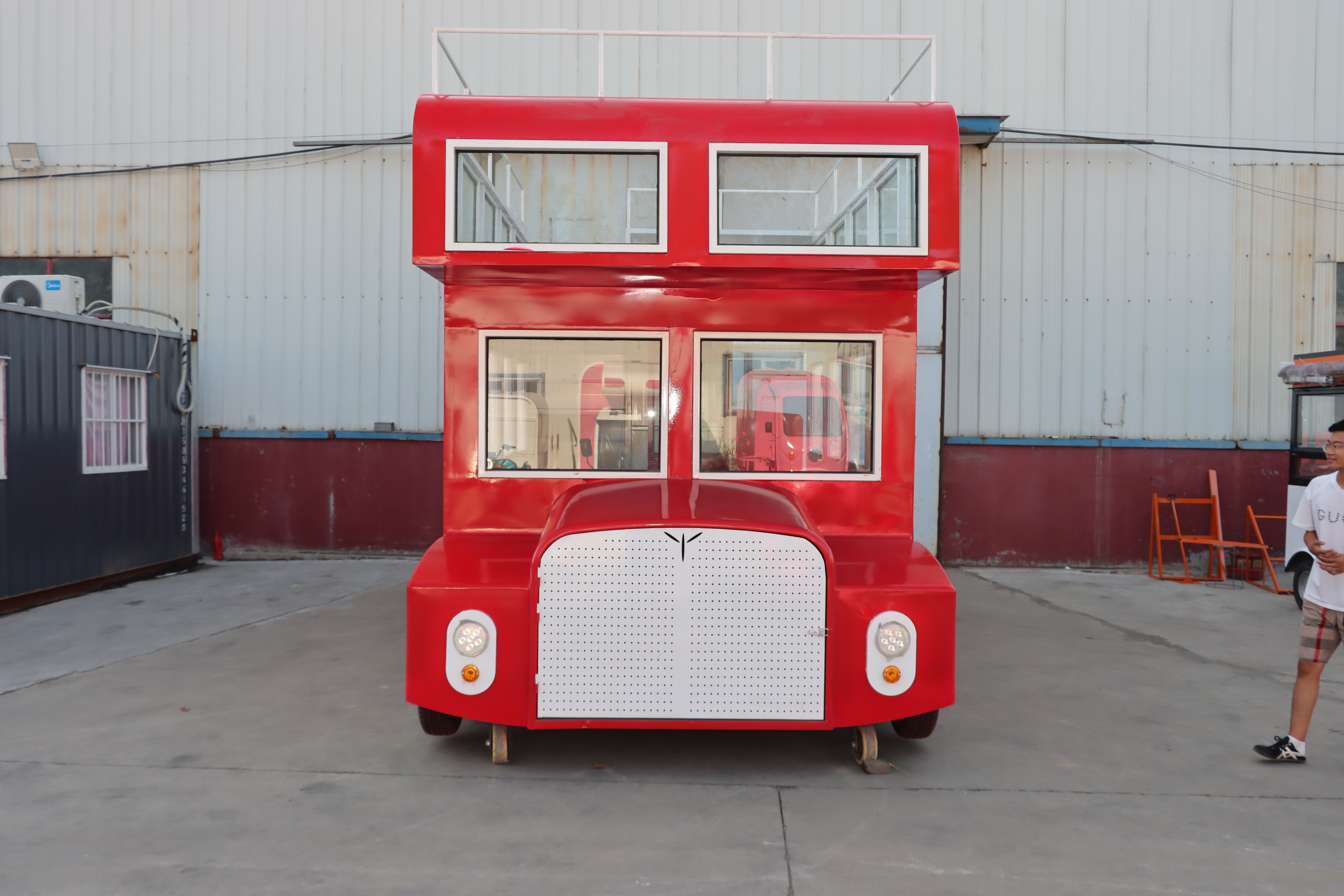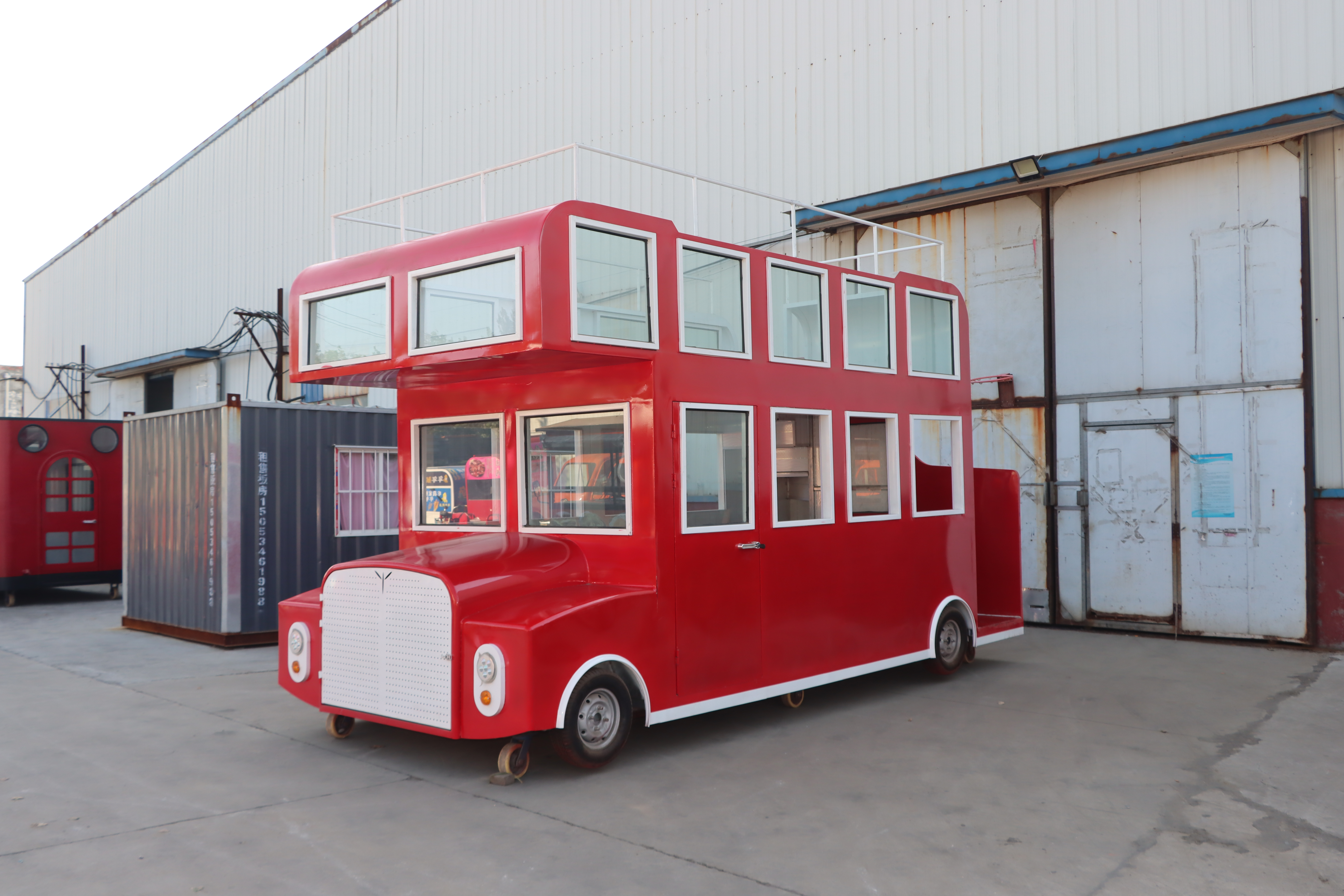双层巴士款式餐车,是一种集创意、实用与趣味性于一体的独特餐饮服务设施。这种餐车设计灵感源自经典的双层巴士,不仅保留了巴士原有的复古韵味和流线型外观,还巧妙地将其内部空间转化为两层就餐区域,为顾客带来前所未有的用餐体验。