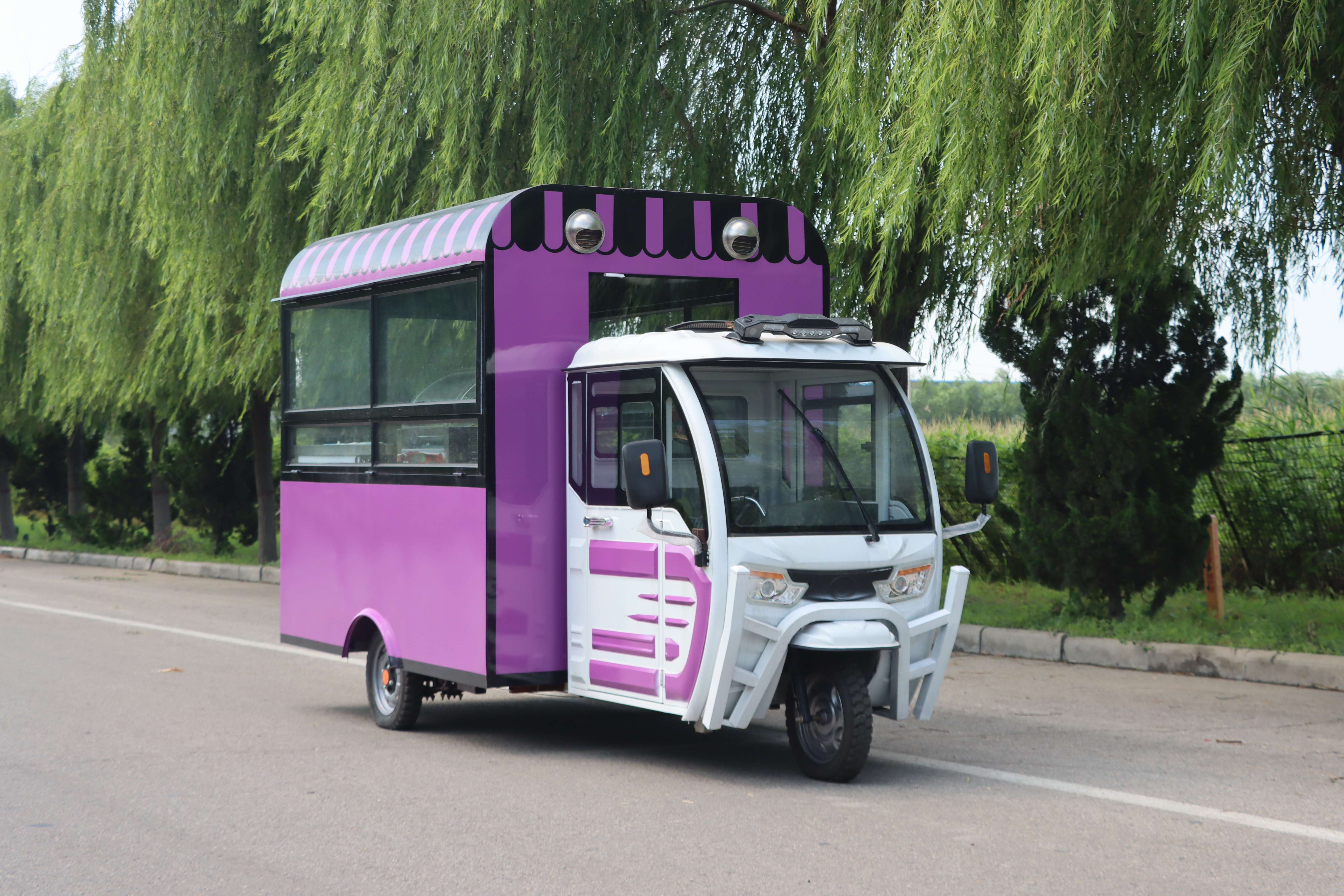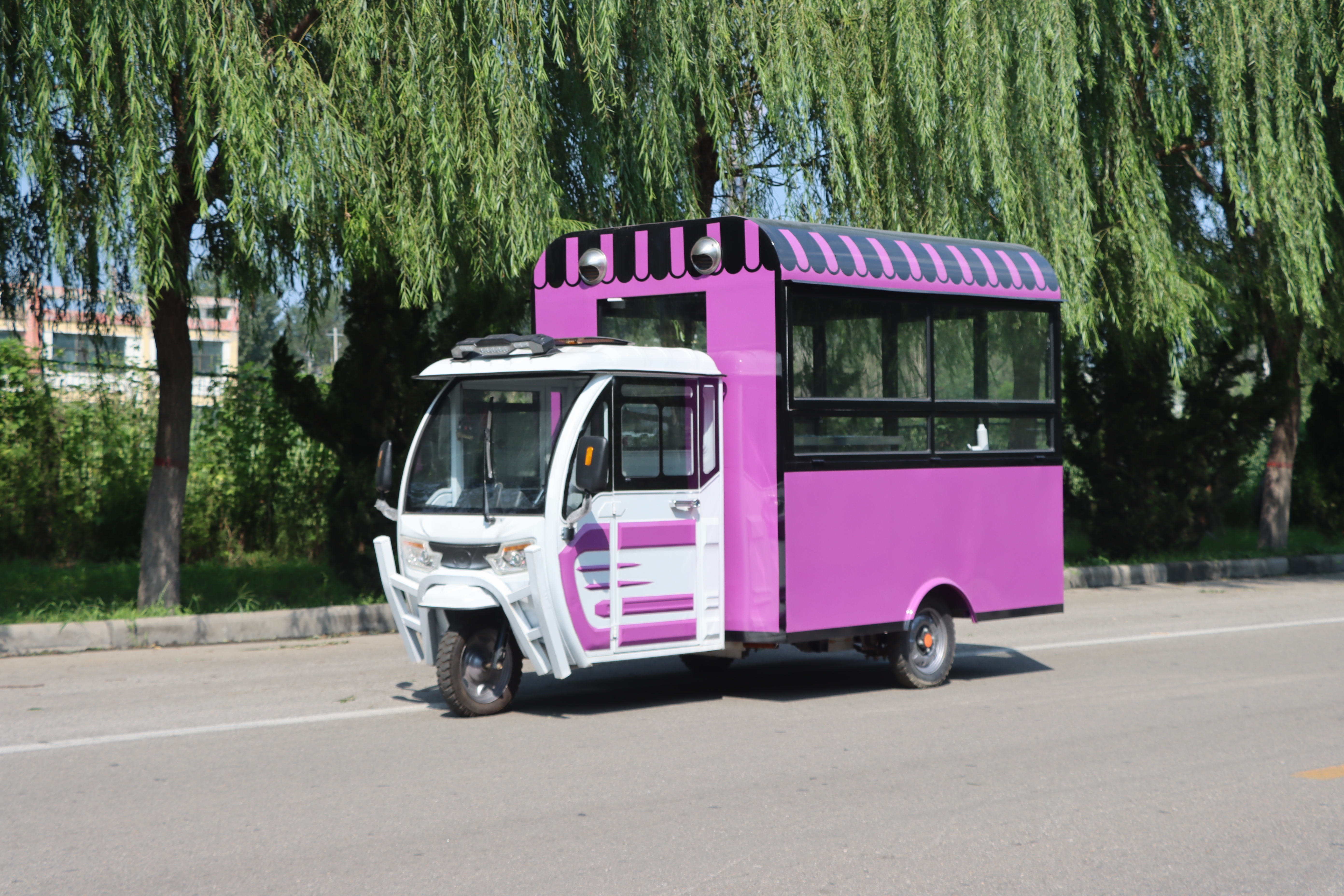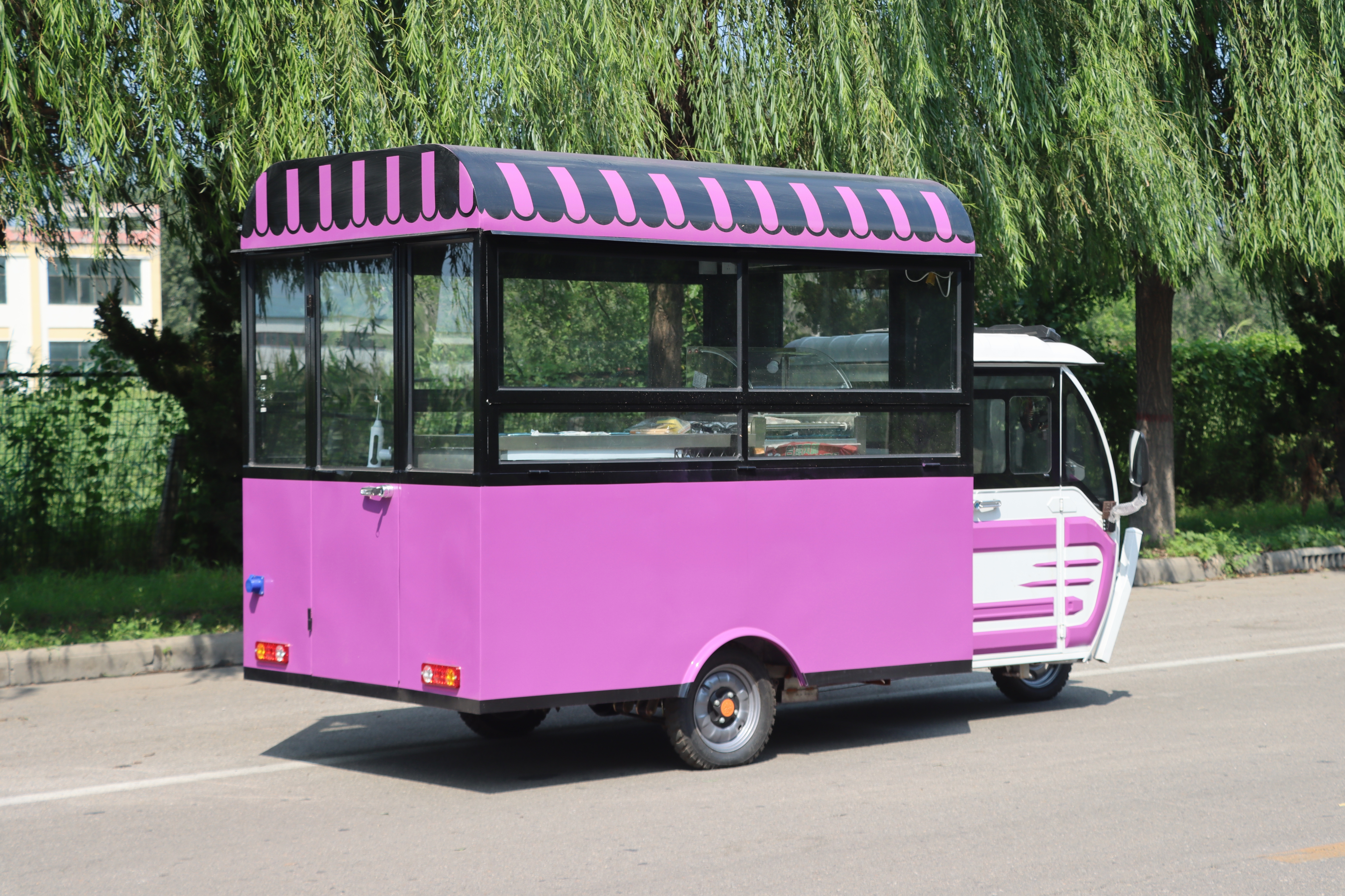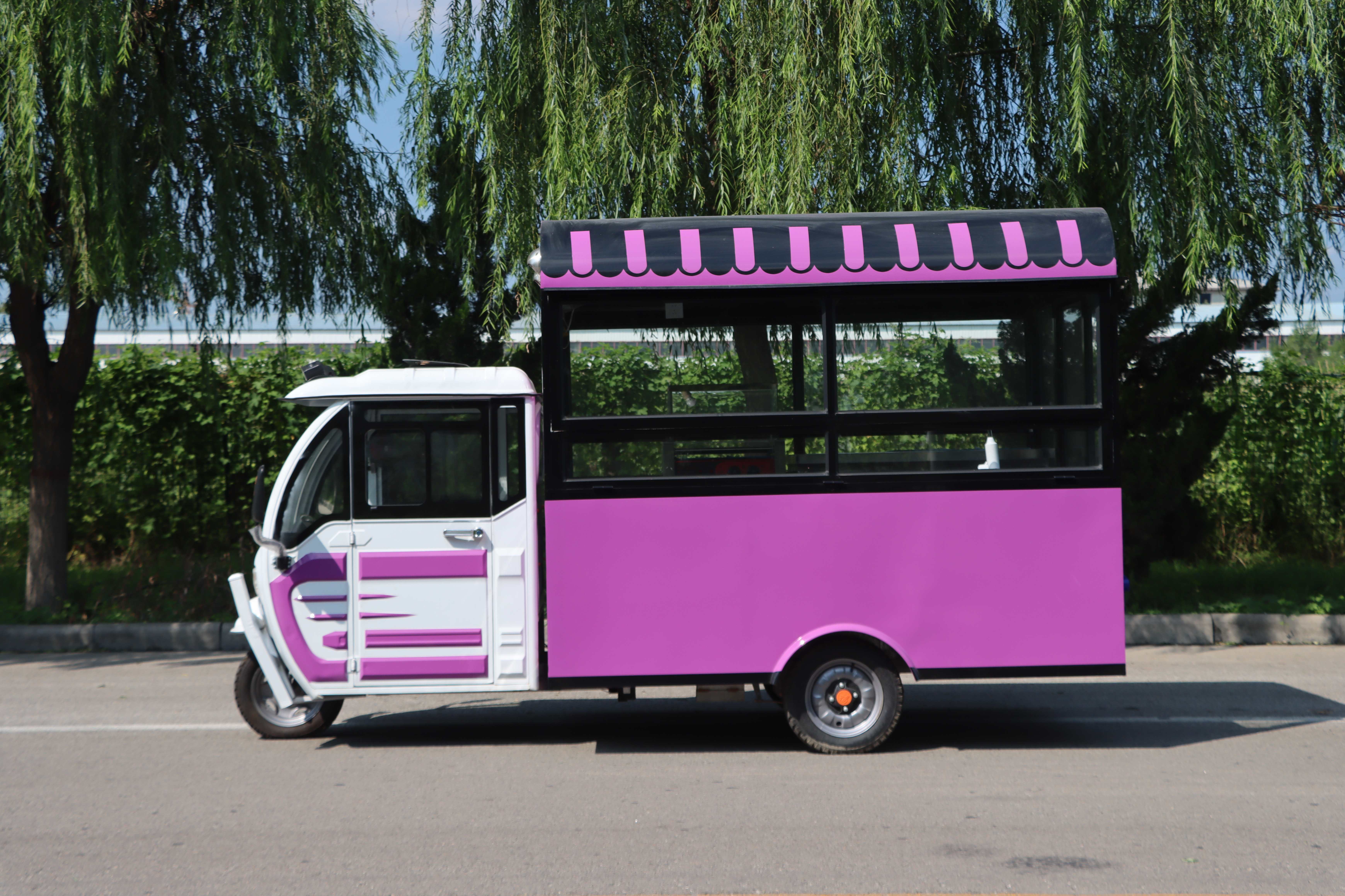 欢迎来到梦幻般的紫色冰激凌三轮餐车——一个融合了复古风情与现代甜蜜创意的移动美食殿堂!这辆引人注目的三轮餐车,身披一袭神秘而优雅的紫色外衣,在阳光下熠熠生辉,仿佛是从童话世界中驶出的甜蜜使者。