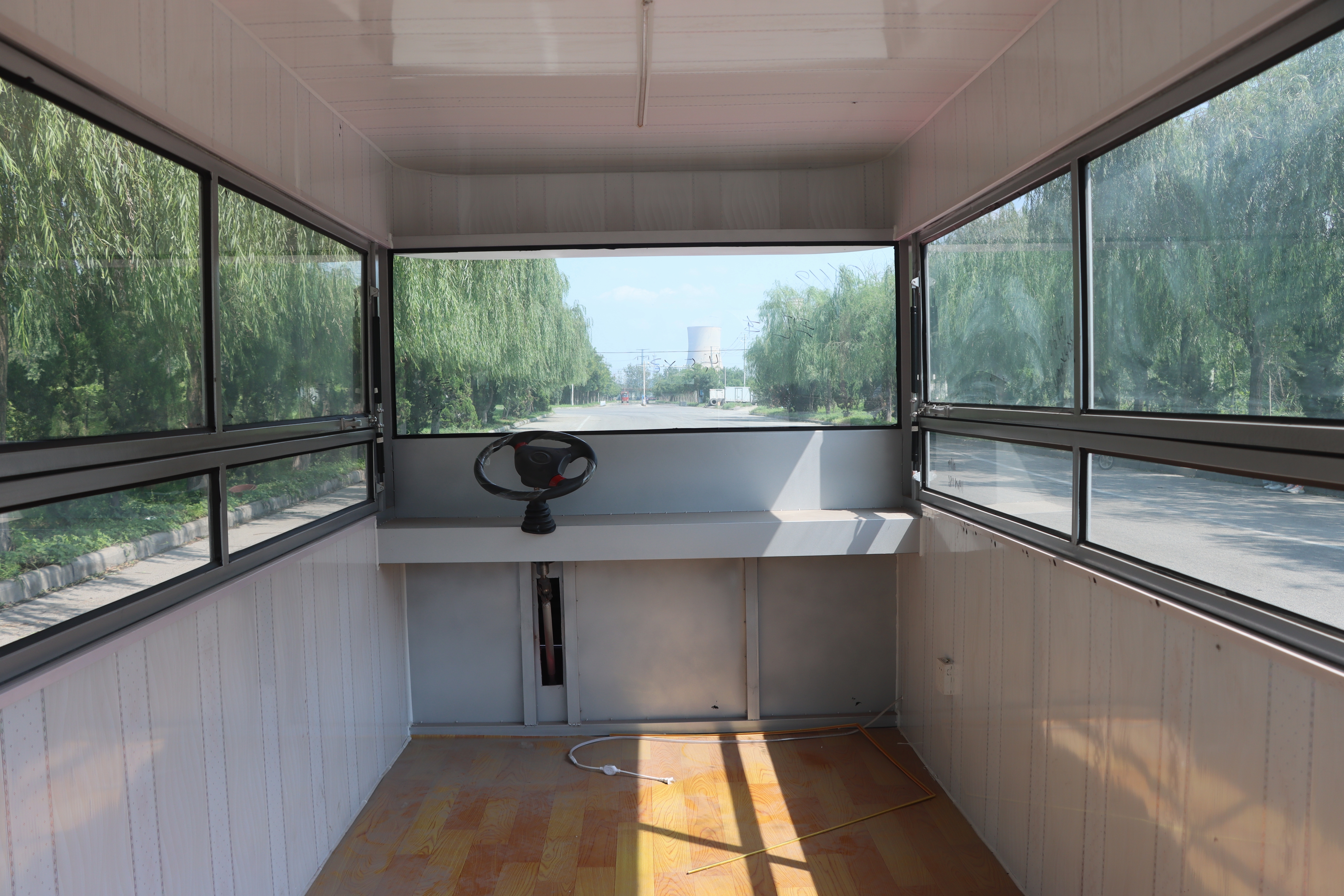 餐车的设计充满了复古韵味,圆形的窗户和矩形的前窗相得益彰,既保留了老式餐车的经典元素,又融入了几分现代感。顶部的平坦遮阳篷,不仅为餐车提供了遮阳避雨的功能,还为其增添了一份休闲与惬意。