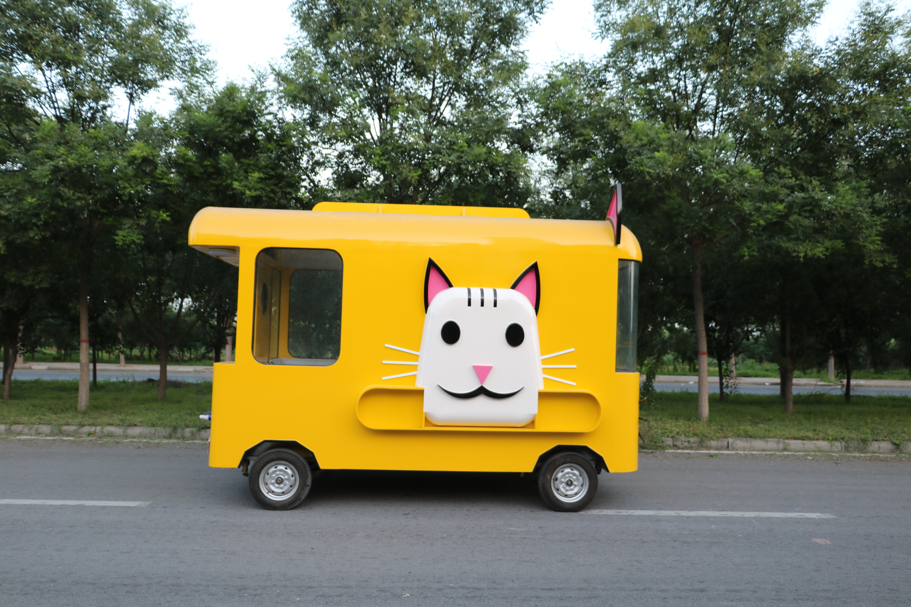 菲尔猫款式四轮街景餐车可能是一款结合了时尚与实用性的移动餐饮设备,以下是对其的详细介绍: